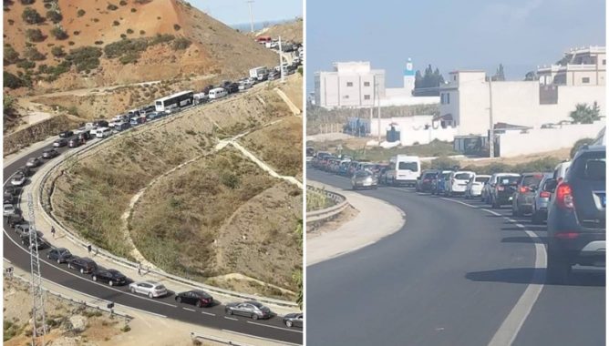 تشهد مدن شمال المغرب و خاصة طنجة، اكتظاظا كبيرا خلال الأيام الجارية بفعل التوافد المهم للزوار المغاربة من داخل وخارج أرض الوطن على المنطقة، من أجل قضاء عطلة الصيف على شواطئها، وهو ما جعل شوارعها الرئيسية تعيش على وقع اختناقات مرورية شديدة. فمباشرة بعد انقضاء أيام عيد الأضحى، شهدت مدن طنجة و تطوان والمضيق والفنيدق ومرتيل والمناطق المحيطة بهم، توافدا كبيرا للزوار، ما جعل الطرق الرابطة بين هذه المدن تعرف ازدحاما شديدا يستمر لساعات مع حركة سير بطيئة للسيارات، خاصة عند مداخل الشواطئ.