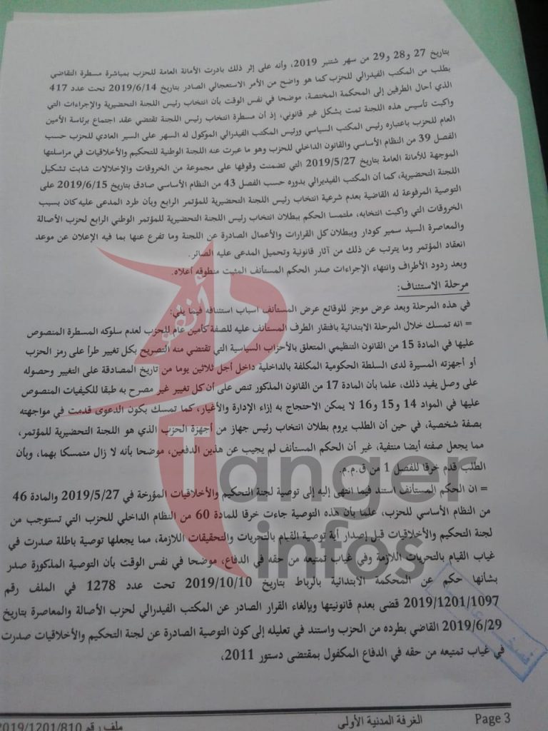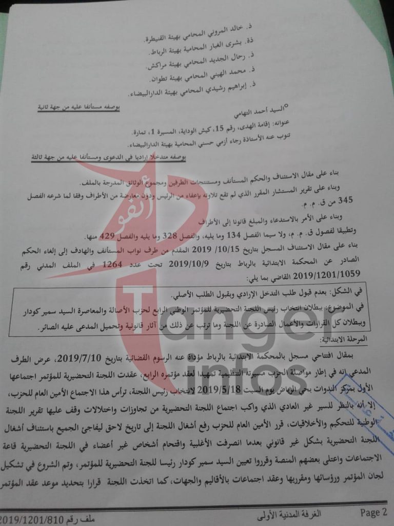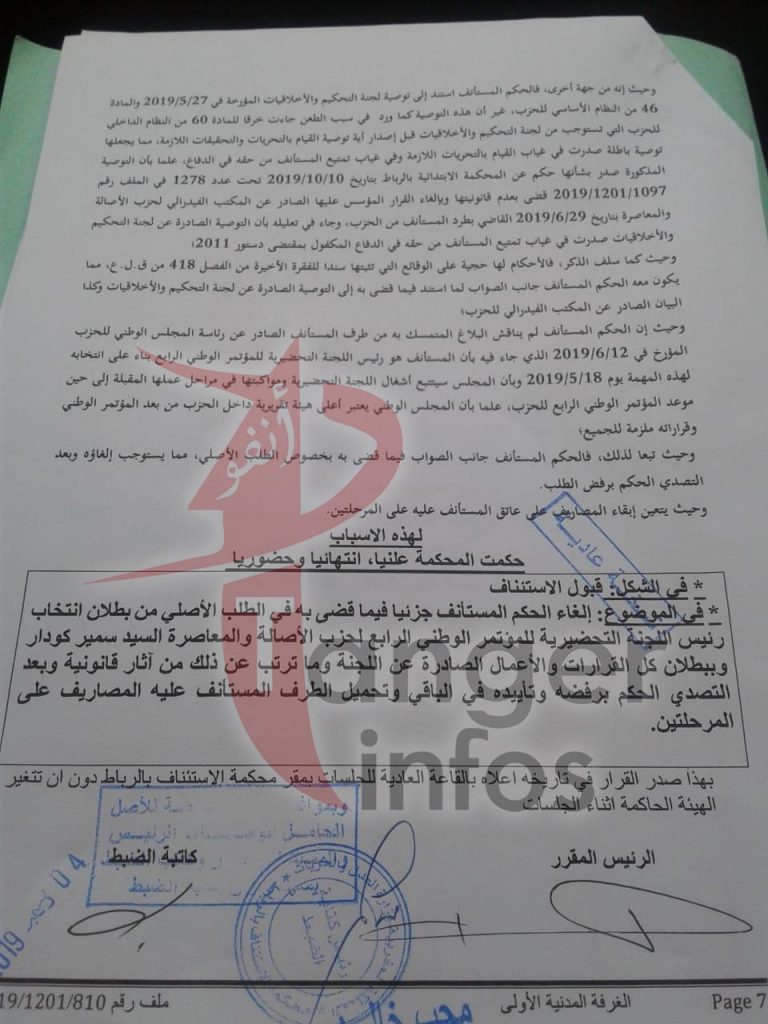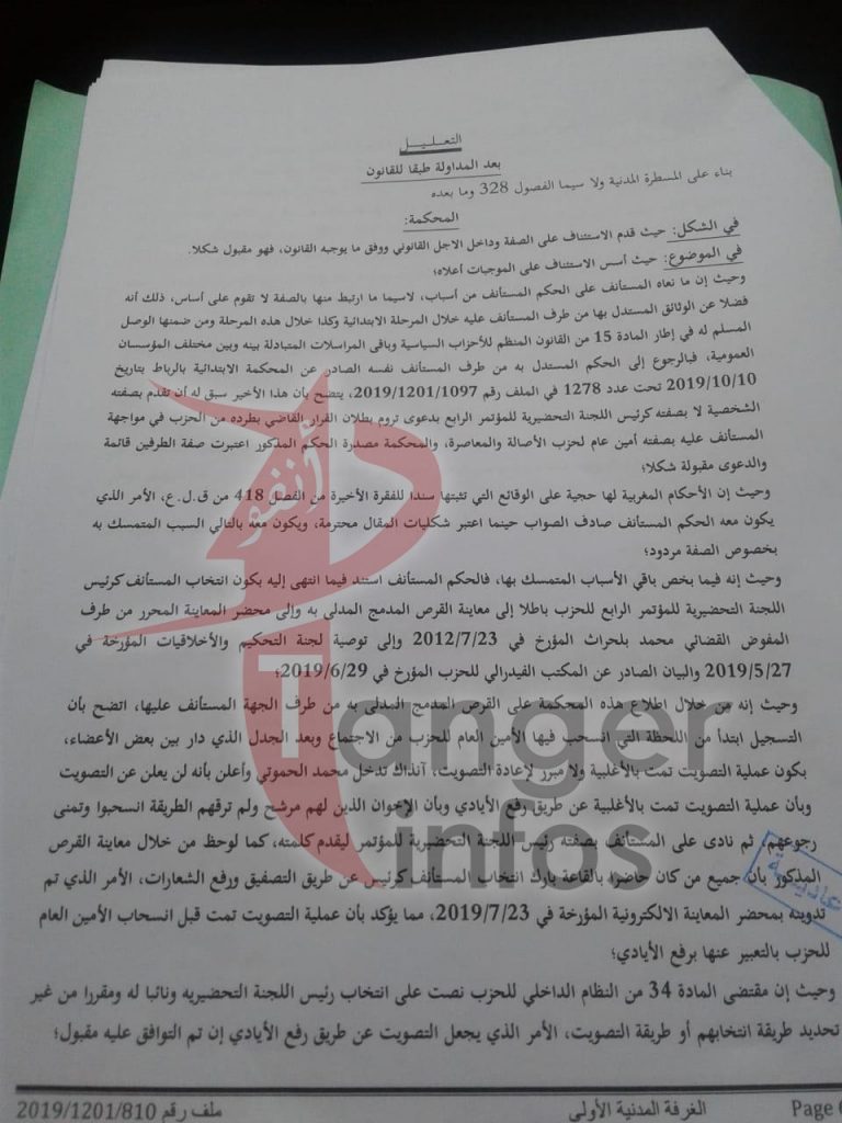 حصري : النسخة الكاملة من حكم محكمة الرباط لصالح تيار المستقبل بحزب البام (صور)