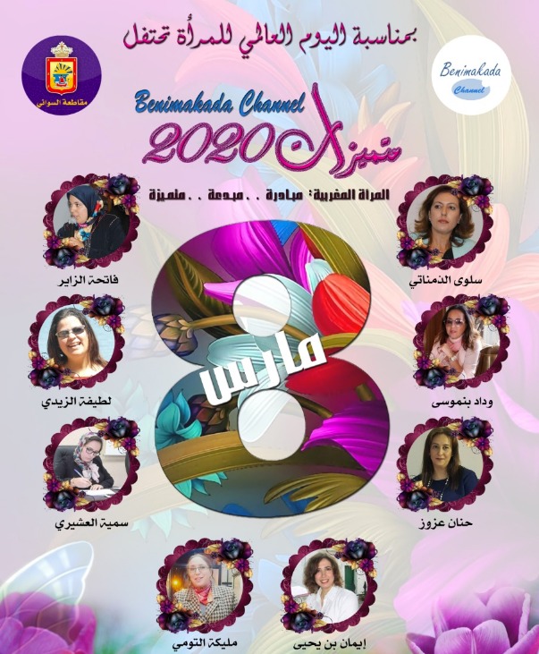 تنظم مؤسسة BENIMAKADA CHANNEL بشراكة مع مجلس مقاطعة السواني وبدعم من المؤسسات الإعلامية الرائدة بمدينة طنجة، احتفالية “متميزات 2020″، التي تطلقها كمحطـــة احتفاليــة لتتويج المرأة المتميزة ، وتتويج عطاءاتها ، إن على مستوى القيادة المجتمعيــة ، أو على مستوى حضورها الاعلامي والفني والادبي ، وابراز دورها الريادي المساهم بجانب شقيقها الرجل، في الرقي بالمستوى الفكري وتربية الذوق الفني والجمالي، لشرائح المجتمع المغربي.