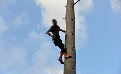 طنجة.. شخص يتسلق عمودا بحي المرس ويهدد باالانتحار