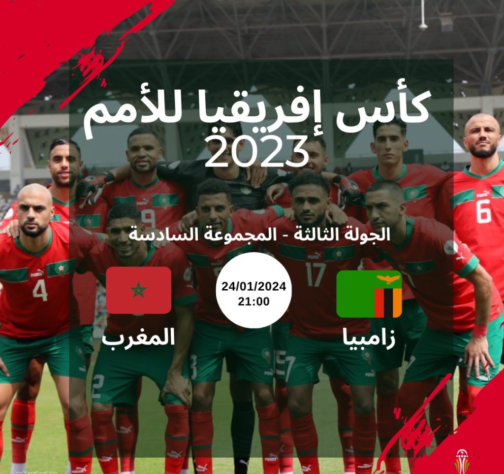 المنتخب المغربي يواجه نظيره الزامبي اليوم الأربعاء برسم الجولة الثالثة من المجموعة السادسة من كأس الأمم الإفريقية