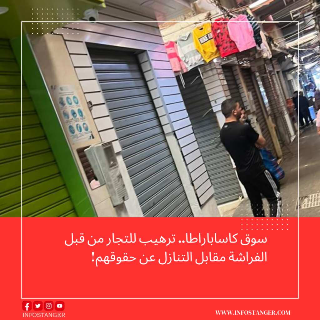 كما يعيش اليوم تجار السوق حالة من الرعب بسبب التوغل والفساد المستشري متسائلين هل بحملات التحرير الموسمية للملك العمومي سيتخلص سوق كاساباراطا من مظاهر العشوائية التي يرسمها “الفراشة”؟ وأين مجموع المنتخبين الذين يعتبرون السوق معقلا انتخابيا لهم من تأطير العملية والمساهمة في إيجاد الحلول؟ وهل تستطيع السلطات المركزية فتح تحقيق في الاتهامات الخطيرة التي أطقها الفراشة عبر مواقع إعلامية ضد رجال السلطة السابقين ؟؟