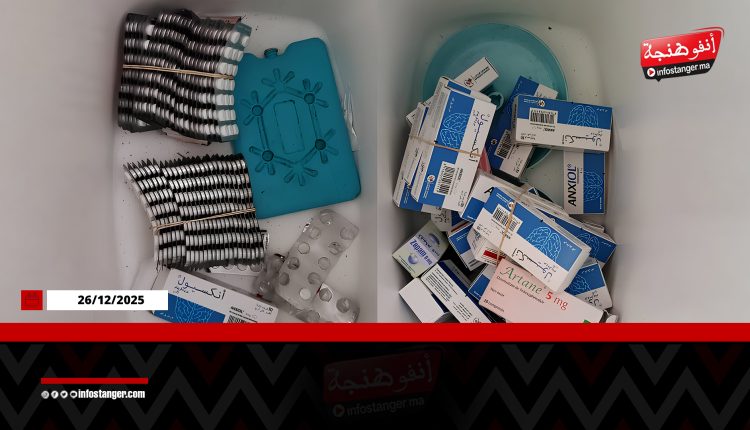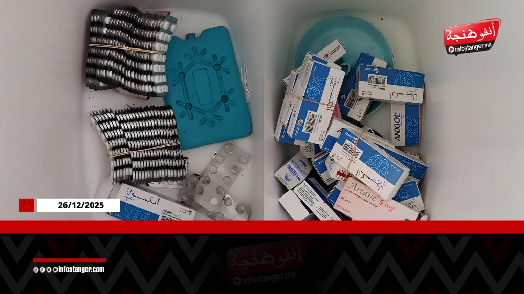وأظهرت عملية التفتيش ضبط السلطات 1,767 قرصامخدرا من أنواع مختلفة، إلى جانب جرعات من مخدري الكوكايين والحشيش، بالإضافة إلى سلاح أبيض وميزان إلكتروني ومبلغ مالي يشتبه في كونه من متحصلات النشاط الإجرامي.